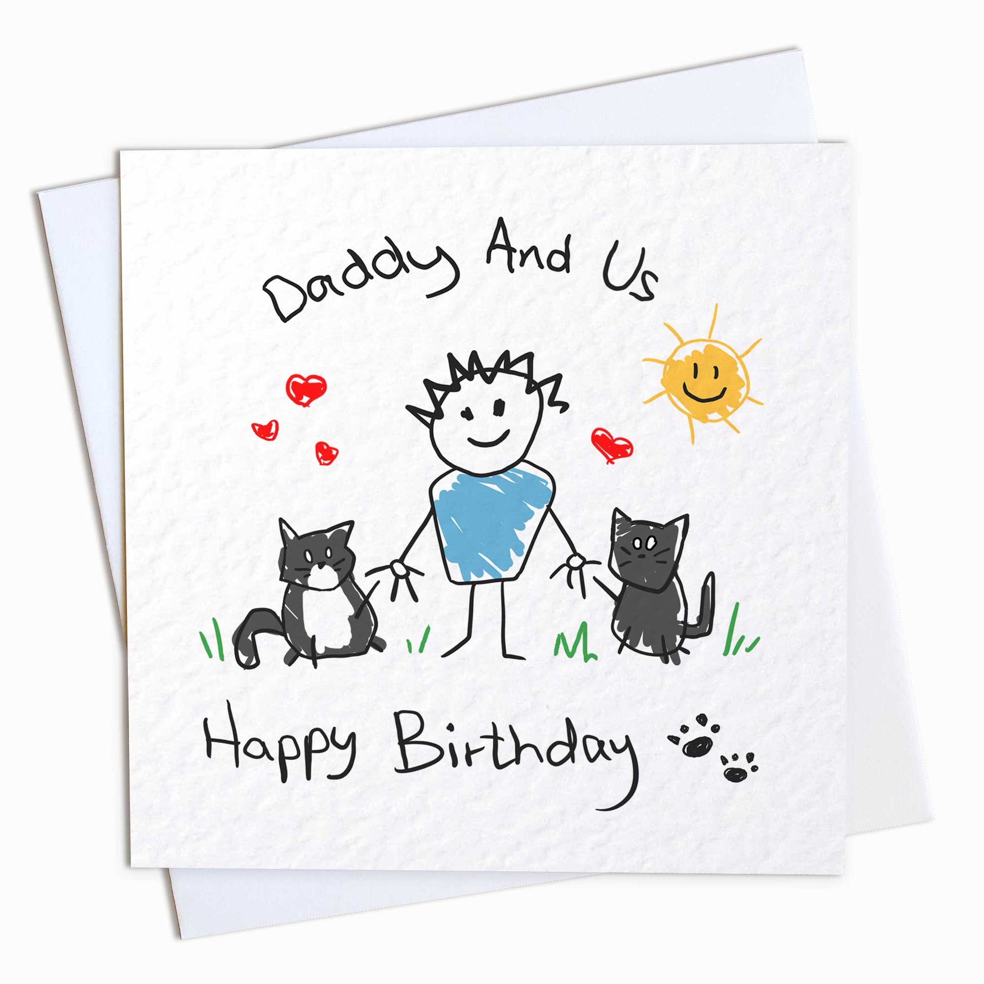 Celebrate your favourite cat dad’s birthday with a personalised card straight from the cats! Our Cat Daddy and Me birthday card features a hand-drawn illustration of two cats holding hands with their human – designed to look as though the cats drew it themselves, wobbly lines and all. It’s a fun, heartfelt way for your feline friends to say, “We love you, Dad!”