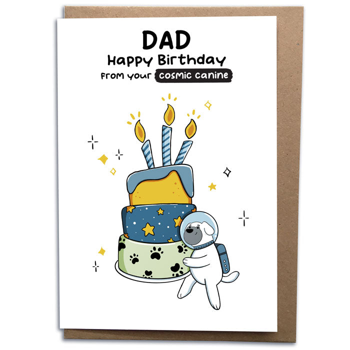 Cosmic Cake Card - Happy Birthday Dad From The Dog