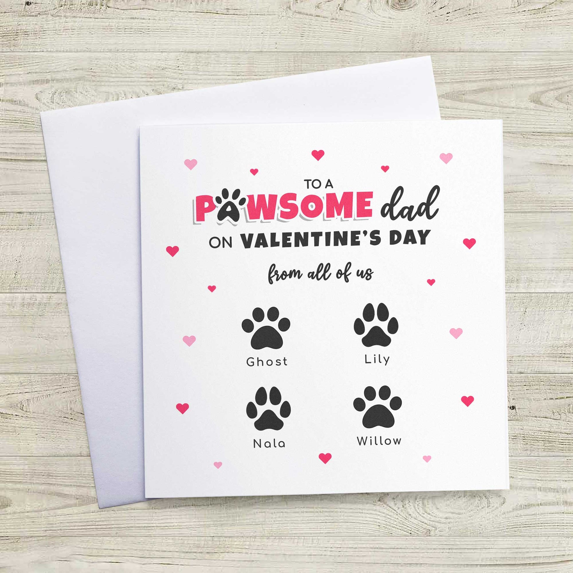 Pet Dad Valentines Card from Pets – Personalised Paw Print Card