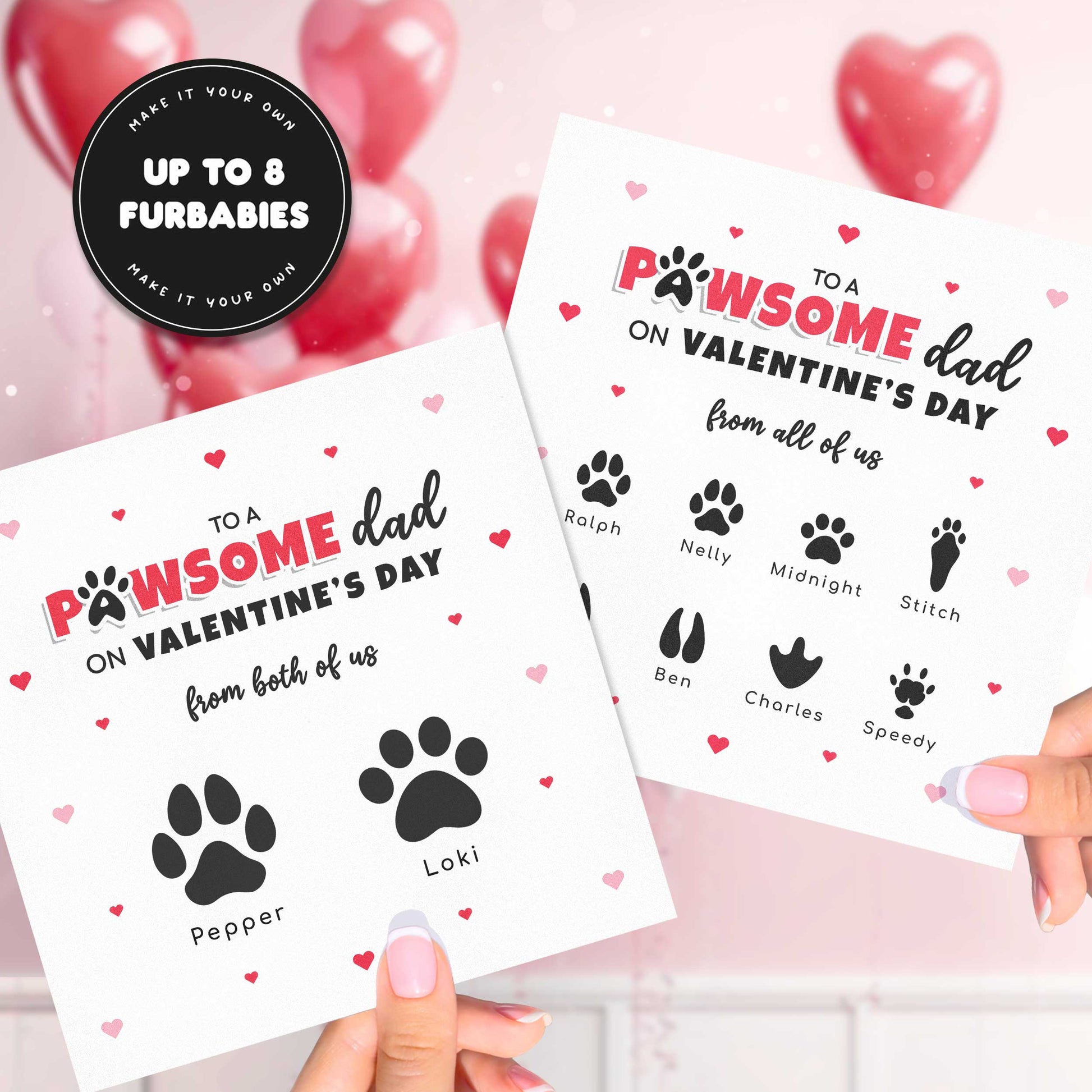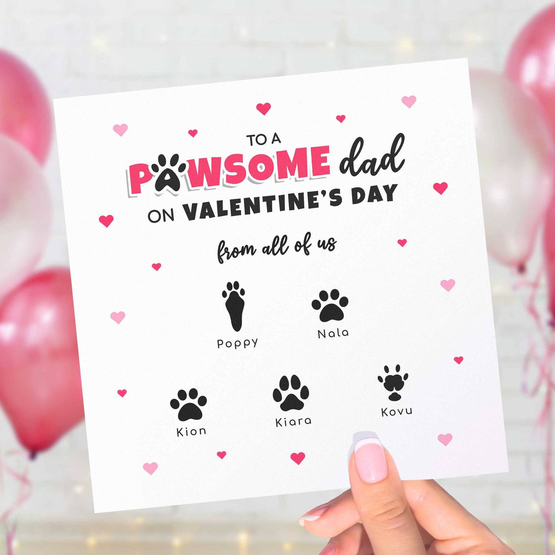 This personalised pet valentines card is perfect for celebrating the bond between a pet parent and the animals who adore him most. Whether it’s one loyal companion or a whole paw-shaped family, this custom pet paw print card turns Valentine’s Day into a meaningful moment any pet owner will treasure forever