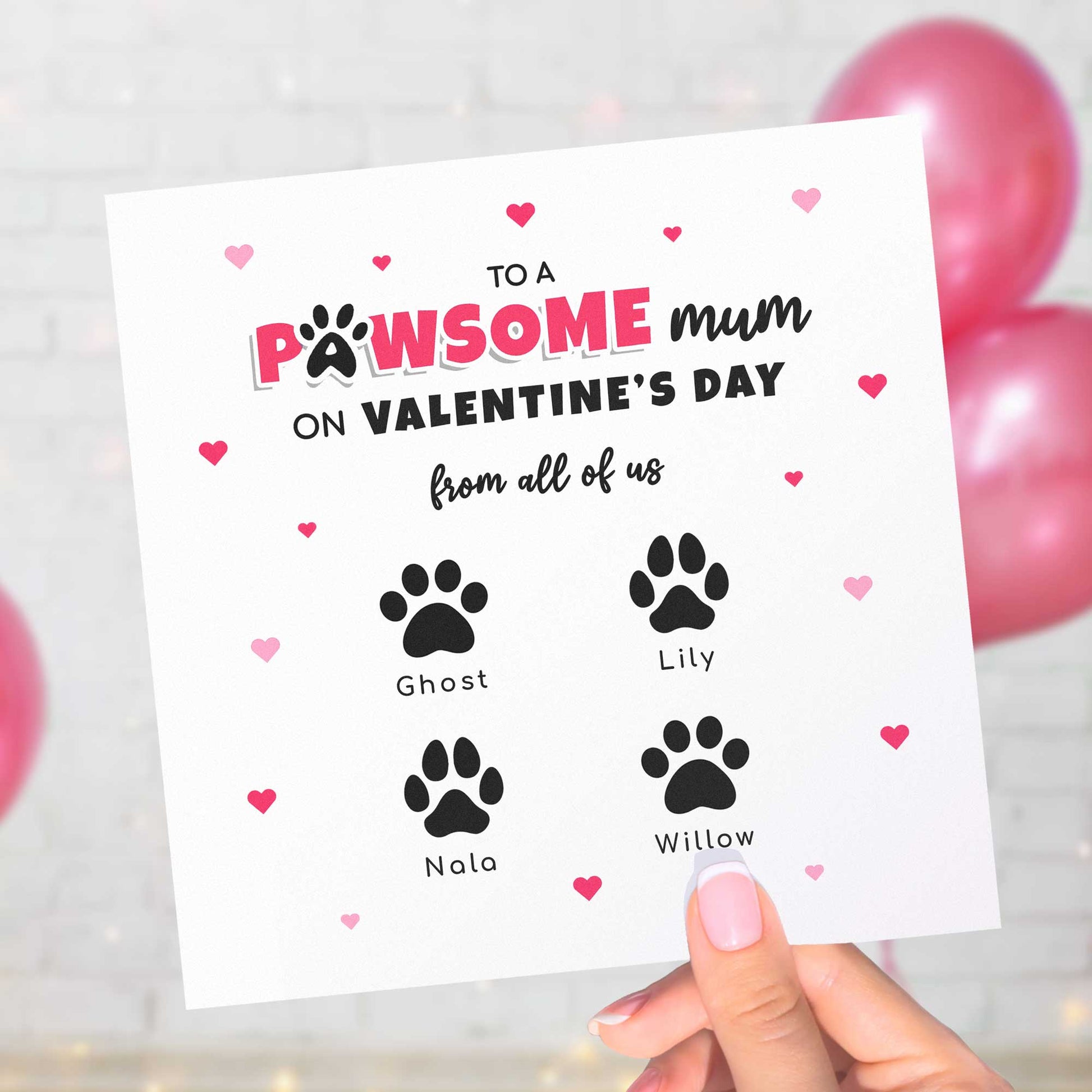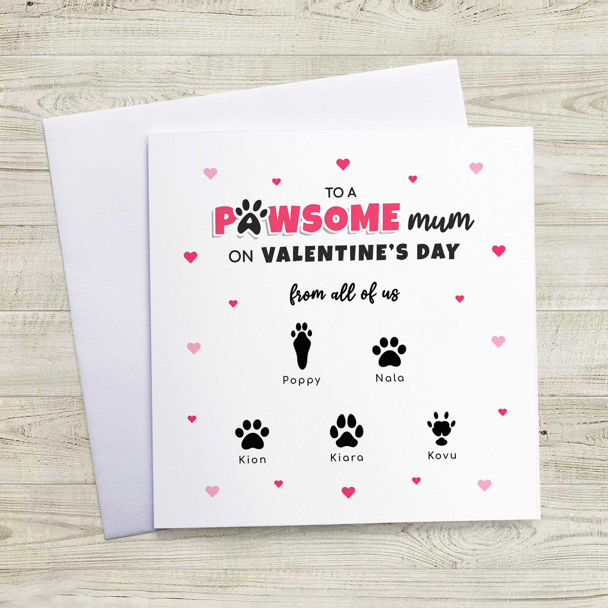 Pet Mum Valentines Card from Pets – Personalised Paw Print Card